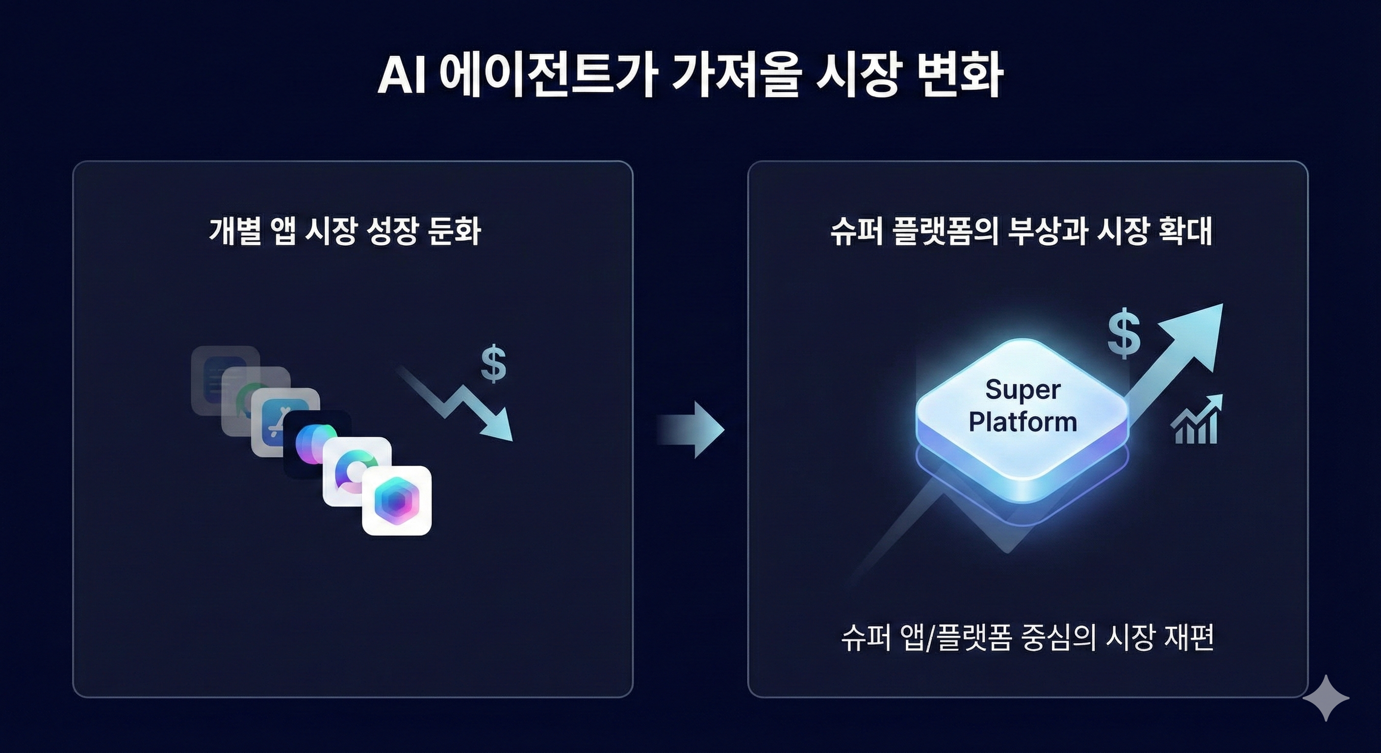지금 우리는 또 한 번의 거대한 '플랫폼 교체기'에 서 있습니다. 앱을 하나하나 켜는 불편함이 사라지는 순간, 기존의 앱 광고 모델은 무너지고 'AI 비서 구독 모델'이 새로운 부의 원천이 될 것입니다. 남들이 앱 개발사에 투자할 때, 여러분은 그 앱들을 지휘하는 'AI 에이전트' 기업을 선점하시기 바랍니다.