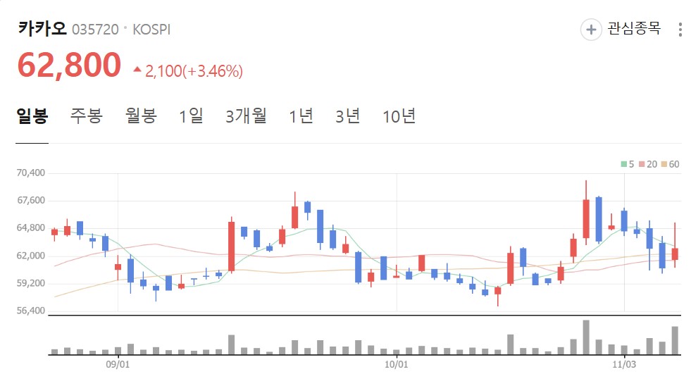 [카카오 일봉 차트]