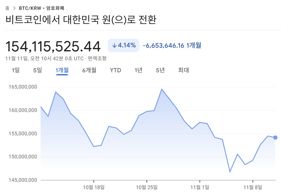 지난주(11월 3~7일), 비트코인은 2025년 3월 이후 최악의 한 주를 보냈습니다. 심리적 지지선이었던 1억 5천만 원($100,000)이 붕괴되며 6월 이후 최저치까지 밀려났습니다.