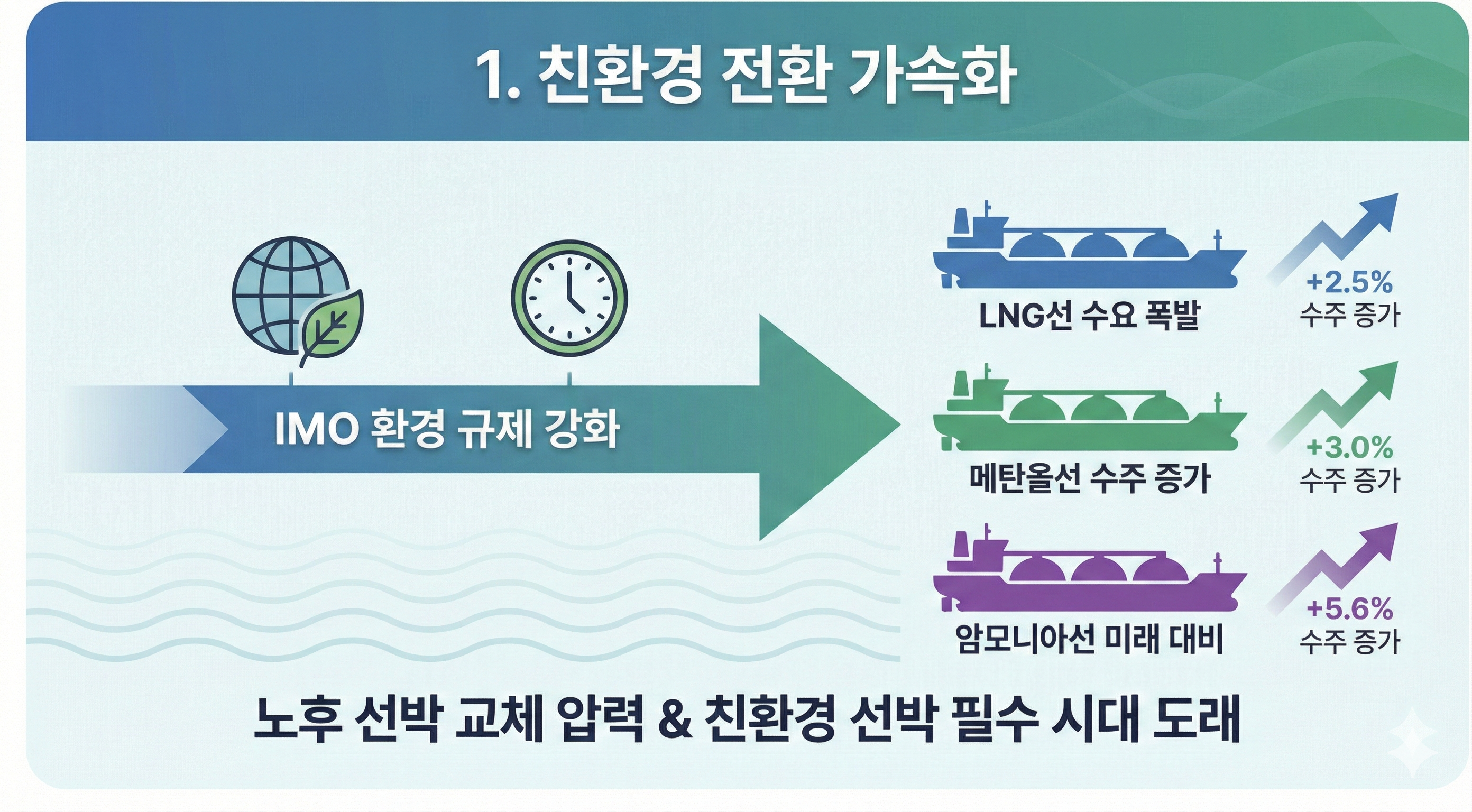 이번 사이클이 '일시적 붐'이 아닌 '구조적 성장'인 이유는 바로 국제해사기구(IMO)의 강력한 탄소 배출 규제 때문입니다.