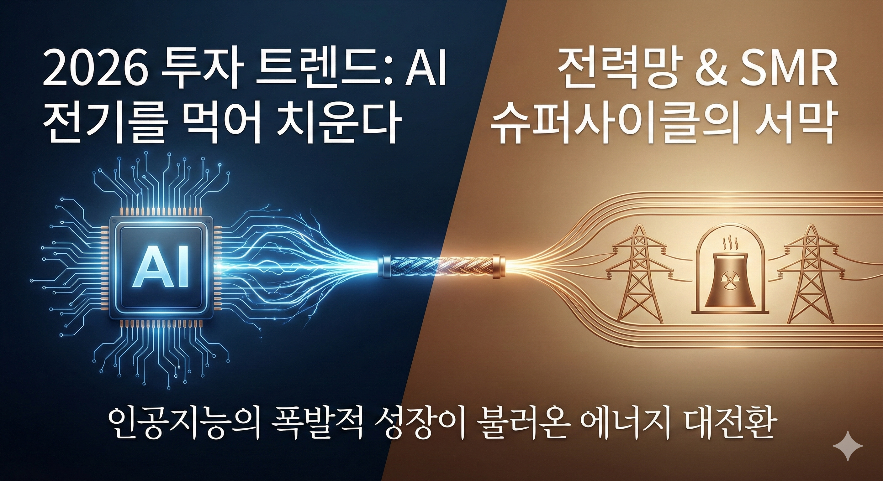 오늘 포스팅에서는 화려한 AI 테마 뒤에 숨겨진, 하지만 AI보다 더 길고 강력하게 갈 수밖에 없는 '전력 인프라와 차세대 원전(SMR)' 시장을 아주 깊이 있게 파헤쳐 보겠습니다.